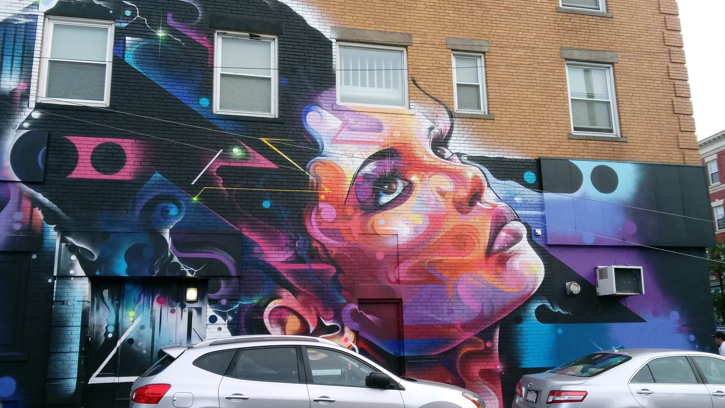 Cities should be colorful! Greek and Roman cities were colorful! Time wore off all the paint and we collectively forgot. European cities have texture because of the cobble sidewalks, different cobble streets, walls covered in porcelain tiles or stone and murals on any space leftover. Auto-centric cities have the grey concrete aesthetic that is actually the perfect canvas for murals and street art. Artists would willingly cover every surface if allowed, maybe with some community guidelines in place first. While Boston has begun to catch on, other New England Towns have areas where art is on every corner. These bursts of color make any walk more enjoyable and inspirational.